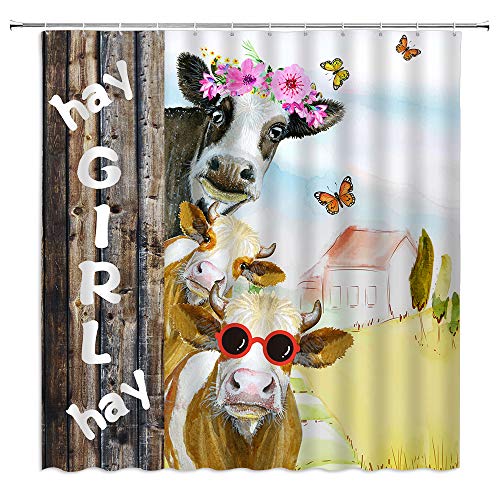 QWRSMYX Rideau de douche vache laitier fleur-papillon style...