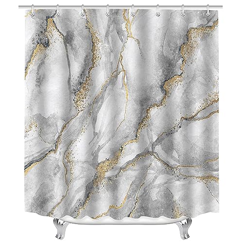 Rideau de douche imperméable anti-moisissure marbre blanc/no...