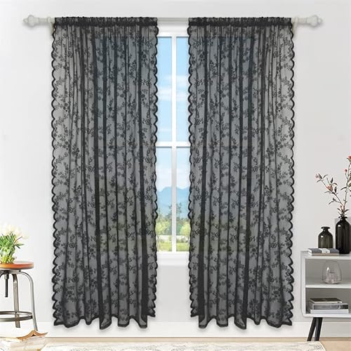 Paire de rideaux transparents en dentelle noire pour chambre...