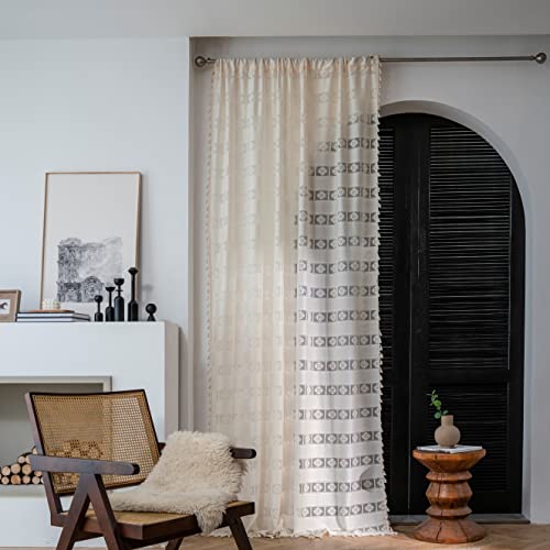 Vintage Rideau Fenêtre Coton Beige Bohème Chic