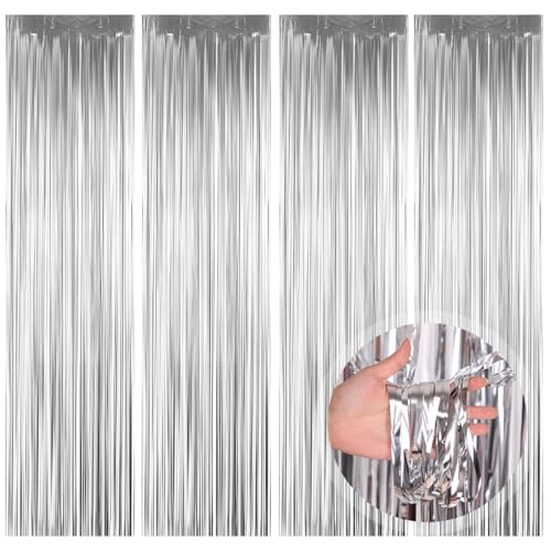 4 Rideaux à Franges Aluminium, 1m x 3m Métalliques Tinsel Ar...