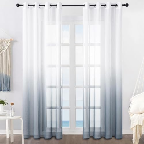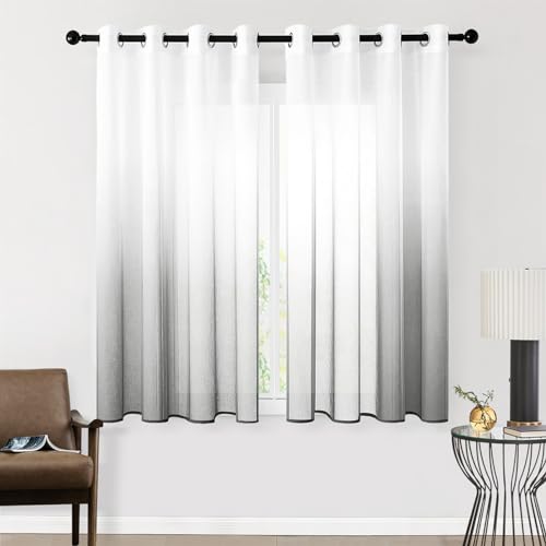 MRTREES 2 Pièces Rideaux Voilage Blanc et Gris Dégradée 140x...