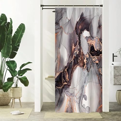 Rideau Douche Marbre Noir, Anti-Moisissure, Grand Gris et Do...