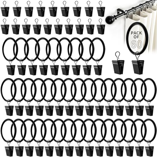 Pince rideaux noir 60 pièces, Anneaux à pince acier inoxydab...