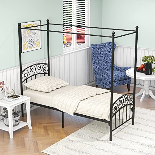 Élégant cadre métal baldaquin 90x200 cm design classique tri...
