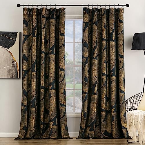 Rideaux Velours Feuilles d'Or Doux, Rideau Noir Attachable a...