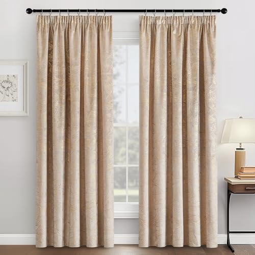 Velours Feuille Doré Motif, Rideau Opaque Isolant Thermique...