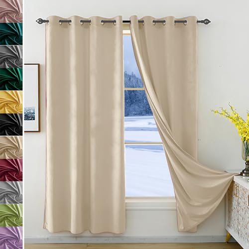 Rideaux Velours Décoratifs Beige Opaque Thermique Lot de 2 1...