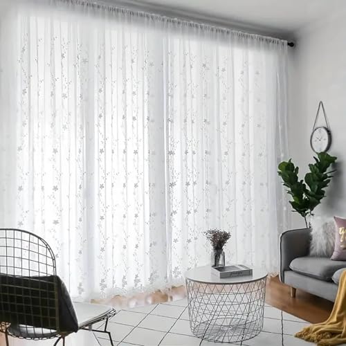Rideaux Voilage Blanc, Rideau Transparent Filet Brodé