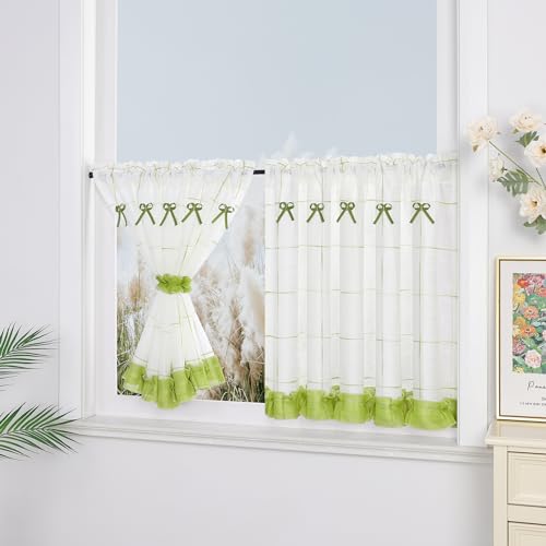 Rideau de cuisine à motif grillagé, prêt à l''emploi.