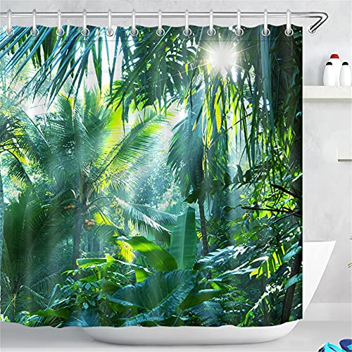 Jungle Forêt Rideau de Douche Plante Tropicale Vert Feuilles