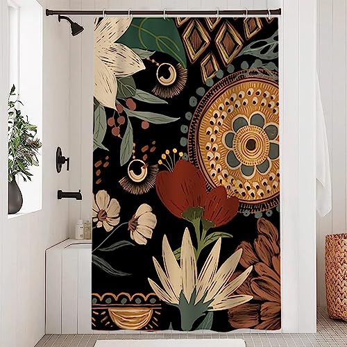 Rideau de douche boho, rideau fleuri feuillage bohème, ridea...