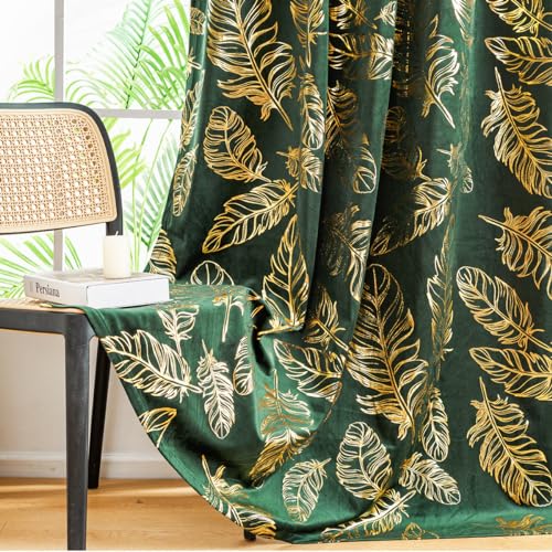 Tootop Lot de 2 rideaux occultants doux en velours vert de 2...