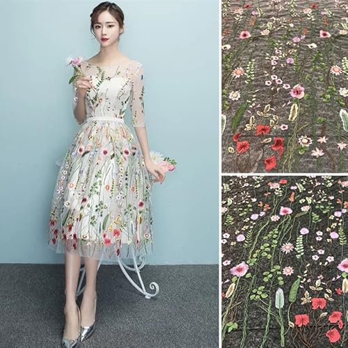 Tissu en dentelle à broder floral exquis pour couture, robe...