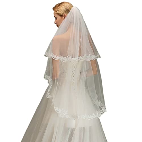 Voile Mariée IYOU Fleur Voiles Tulle Dentelle Appliqué Longu...