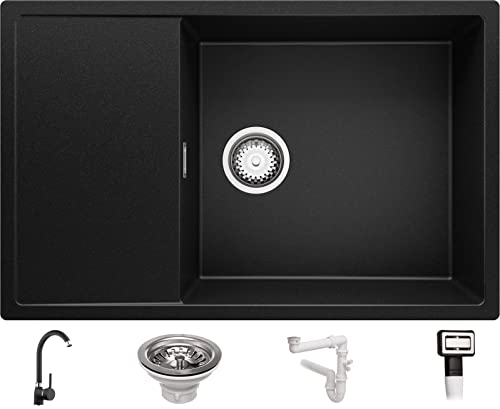 Evier Cuisine en Granit Noir, 78 x 50 cm, Lavabo 1 bac plus...