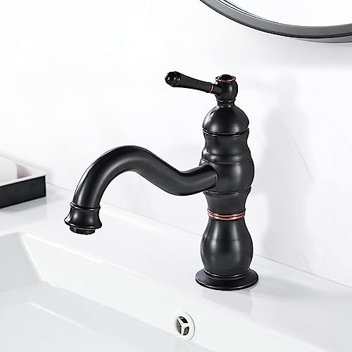kisimixer Robinet Lavabo Noir Rétro, Pivotant à 360° Robinet...
