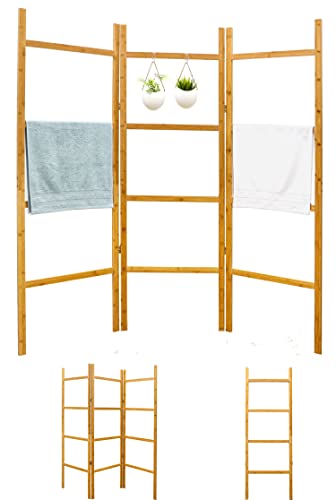 PARAVENT DES SERVIETTES GÉANT - Échelle en bois avec beaucou...