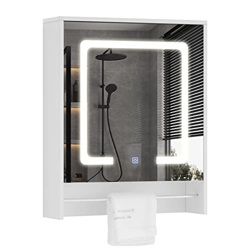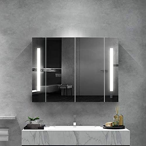 Armoire à miroir LED salle de bain, murale, bouton tactile,...