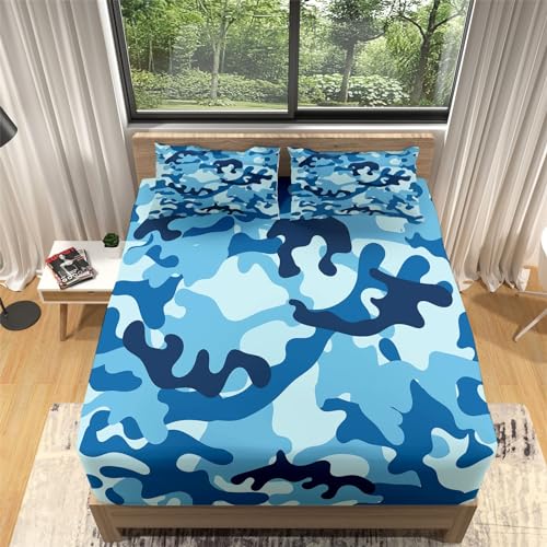 Bleu Microfibre 3D Housse Matelas 30x40 cm Camouflage Antidé...