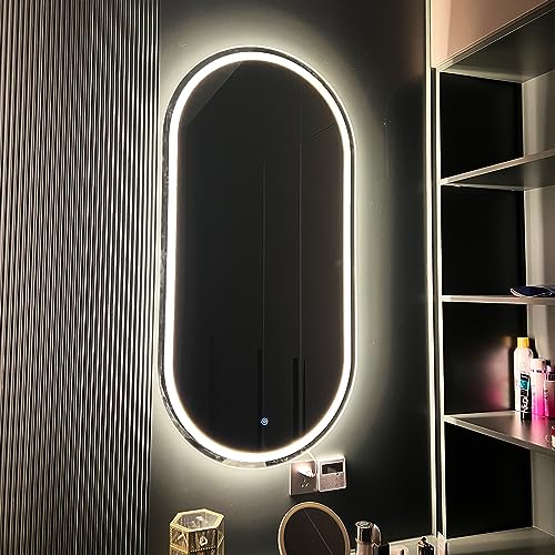 Miroir ovale lumineux LED sans cadre, désembuage LED, réglab...