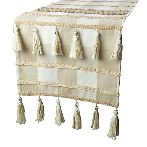 Chemin de Table Beige HomeCentric 35x120cm Coton Glands Carr...