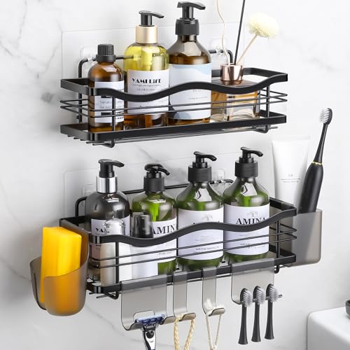Lot de douche sans perçage, étagères, acier inoxydable, raso...