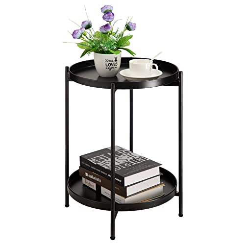 Hollithome Table Ronde 2E Étages Métal Doré Canapé Basse Sal...