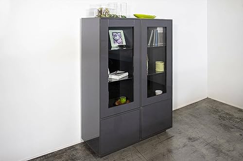 VITRINE BETTINO - Buffet à 4 portes avec étagères en verre,...