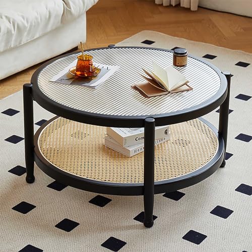 Petite table basse verre étagère rangement rotin 80 cm moder...