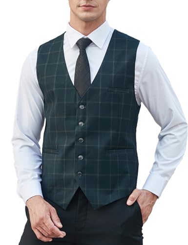 Manner Gilet de Mariage Formel en Coton Plaid Robe Costume