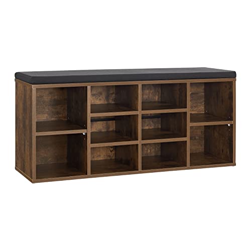 Étagère Chaussures Bois 10 Compartiments Réglables Marron An...