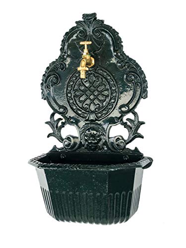 Fontaine murale antique en aluminium, motif lion vert.