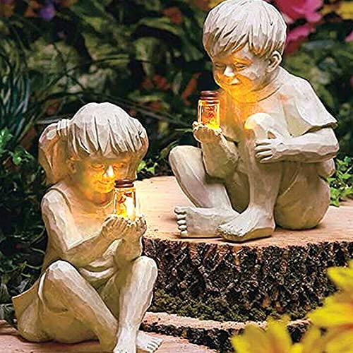 HiJKB Statue Enfants Jardin Sculpture Résine Créative Lumine...