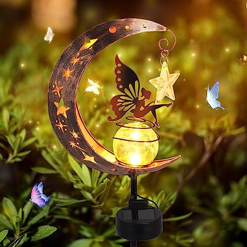 Lumière Solaire Métal Lune Boule de Verre Jardin Extérieur