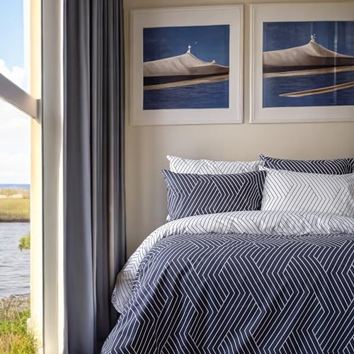 LERUUM Housse De Couette Réversible en Coton Rayé Bleu Fonce...