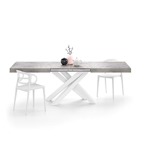 Table Fiver Gris Béton Extensible Pieds Croisés Blancs 160x9...
