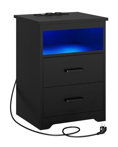 Table de Chevet Éclairage LED, Table d'Appoint Noir, Table d...