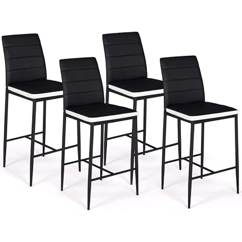 IDMarket - Lot de 4 tabourets Romane PVC noir, bandeau blanc...