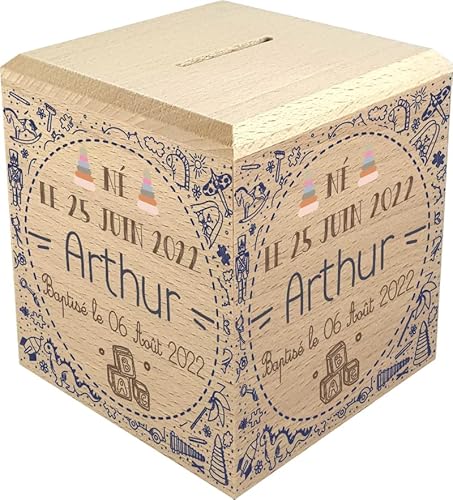 Tirelire Enfant en Bois - Tirelire personnalisée avec prénom...