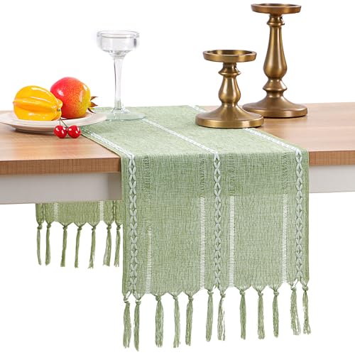 GSG Chemin de table en lin de style bohème avec pampilles –...