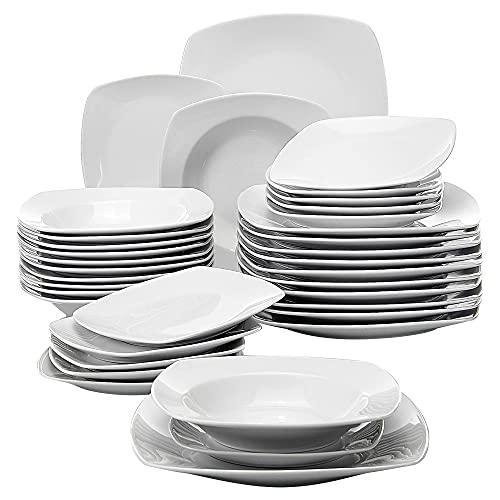 MALACASA Série Elisa Assiettes Carrée Porcelaine 36pcs Servi...