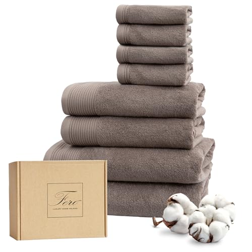 Ferò Lot de 8 Serviettes de Bain de Luxe, 100\\\\% Coton Pre...