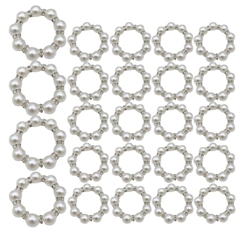 Anneaux de Serviette Perle Ronds 24 pièces Argentée avec Ann...