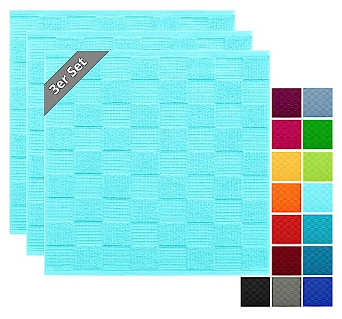 Lashuma 3 Serviettes Essuie Main Cuisine Coton Turquoise