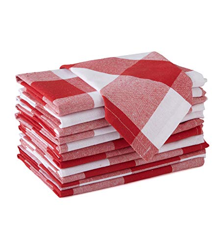 Decok Lot 10 Serviettes Cuisine Rouge Bleu Torchons Coton Qu...