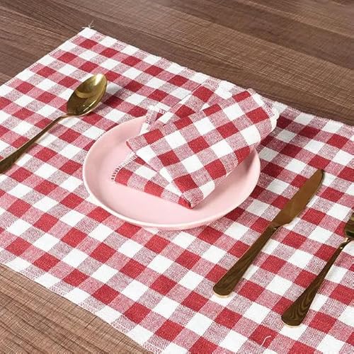 INFEI 12 Serviettes Unies Coton Lin Rayures (Rouge)