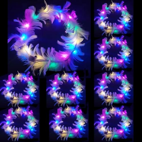 Couronne de Fleurs LED, 10pcs Couronne De Plumes Bandeau, LE...