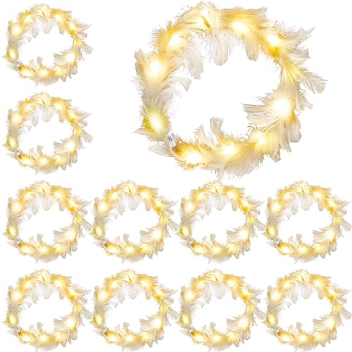 Couronnes de cheveux lumineuses en plumes,10pcs Couronne de...