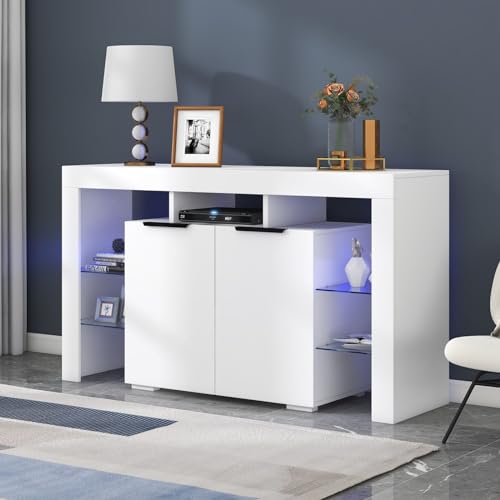 Armoire LED couverts et vitrines, étagères 4 verre, buffet r...